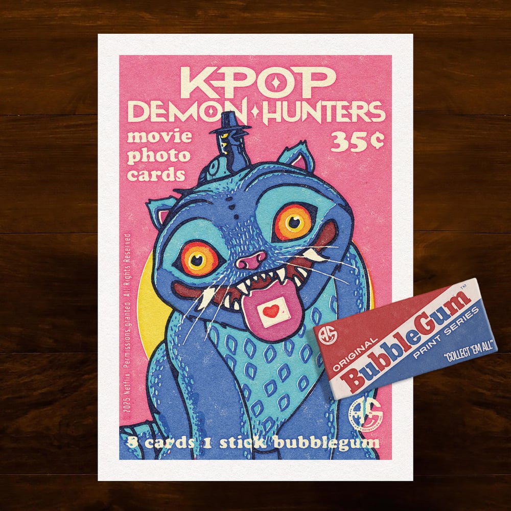 A5 sized mini prints based on the illustration and printing style of old wax packed bubblegum trading cards.
